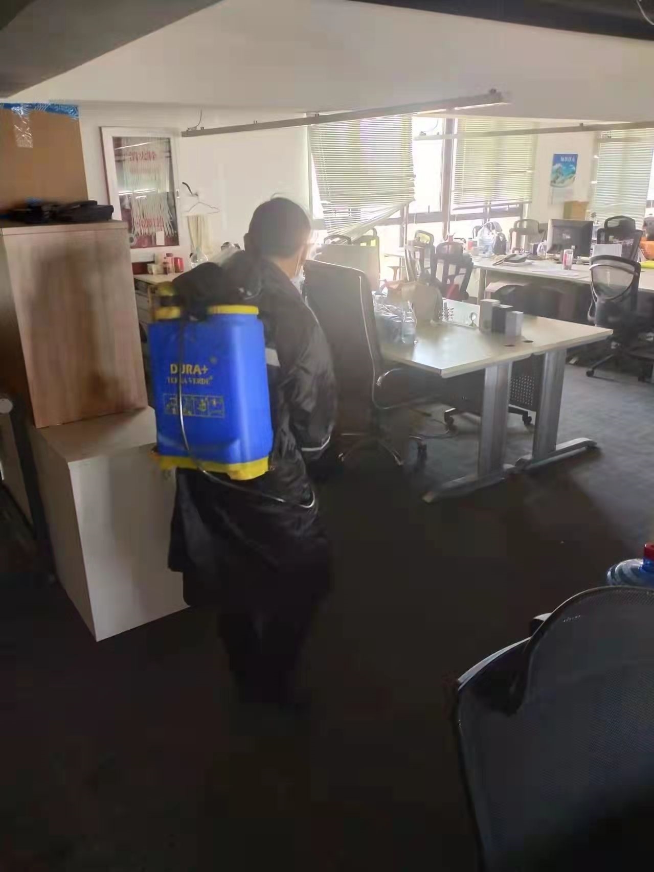 從3月31日封閉至今,中國海誠總部園區(qū)改造項(xiàng)目現(xiàn)場(chǎng)經(jīng)理趙霄始終堅(jiān)守崗位,與裝修工人、保安、食堂廚師阿姨等一道,克服物資緊缺和封閉園區(qū)帶來的心理困難,努力確?;臼乘藓托l(wèi)生。封控前,他和項(xiàng)目組盡最大努力進(jìn)行了材料補(bǔ)充進(jìn)貨和環(huán)境消殺。同時(shí)根據(jù)街道要求有序?qū)嵤┖怂釞z測(cè)和抗原檢測(cè),目前園區(qū)駐留人員全員健康。
