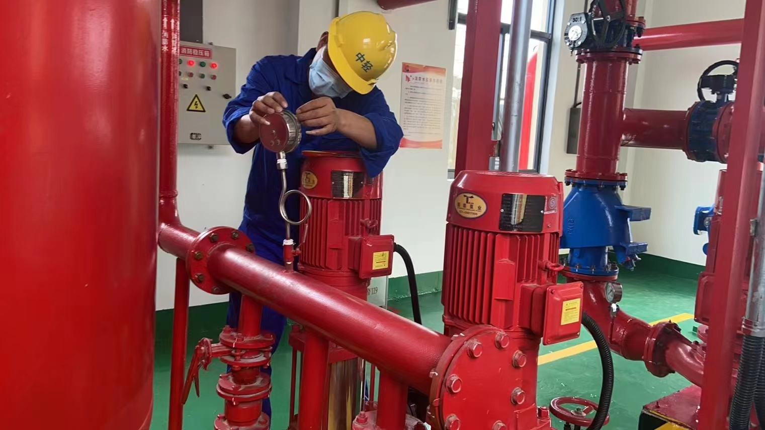 中輕紹化員工正在消防泵房巡檢