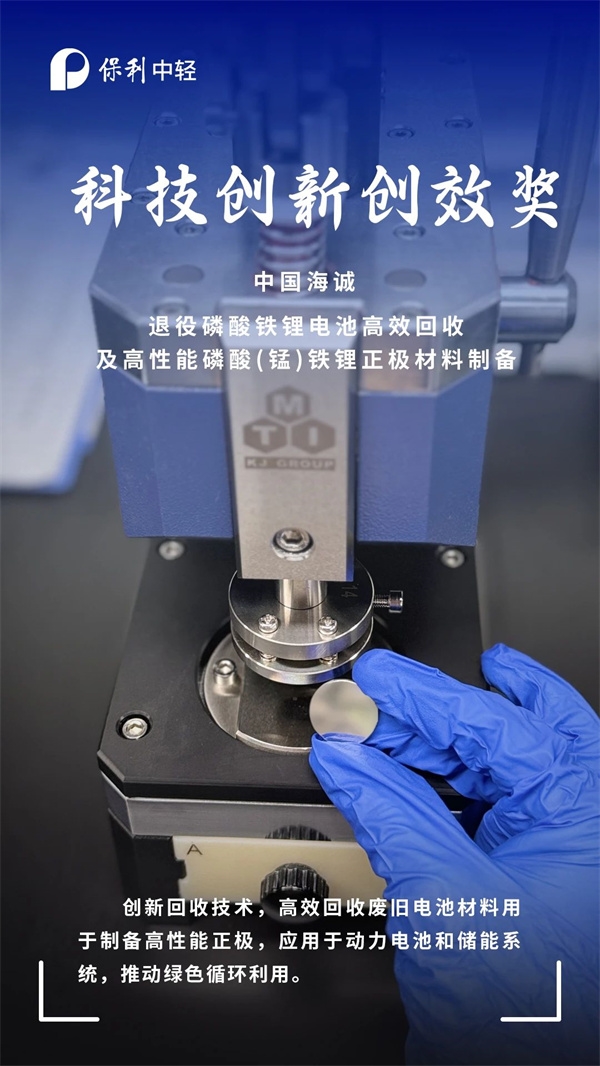 近日,保利集團(tuán)第一屆“青創(chuàng)杯”創(chuàng)新創(chuàng)效大賽結(jié)果公布。中國食品發(fā)酵工業(yè)研究院(簡稱“中國食品院”)開發(fā)的“食品安全標(biāo)準(zhǔn)菌株和標(biāo)準(zhǔn)樣品產(chǎn)業(yè)化應(yīng)用”項目獲成果轉(zhuǎn)化創(chuàng)效獎,中國海誠開發(fā)的“退役磷酸鐵鋰電池高效回收及高性能磷酸(錳)鐵鋰正極材料制備”項目獲科技創(chuàng)新創(chuàng)效獎。此次獲獎再次彰顯保利中輕在科技創(chuàng)新工作方面的顯著成效??靵韲^,一起為他們打call!