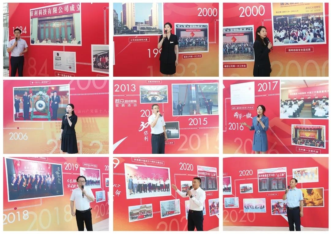 在國(guó)歌奏唱聲中,活動(dòng)拉開帷幕。來(lái)自不同業(yè)務(wù)板塊的9名黨員接力講述保利故事,在他們的講述下,集團(tuán)公司36年發(fā)展史徐徐展開。